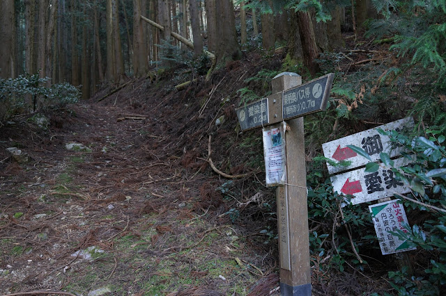 ここから登り始めます。以前は、修験者達が、峠山と八ヶ尾山の間にある筱見(ささみ)四十八滝で水垢離をしてから小金ヶ嶽、御嶽を縦走したあと、ここに下ってきて車をパーキングしたお不動さんにお参りすることで修行を終えたそうです。