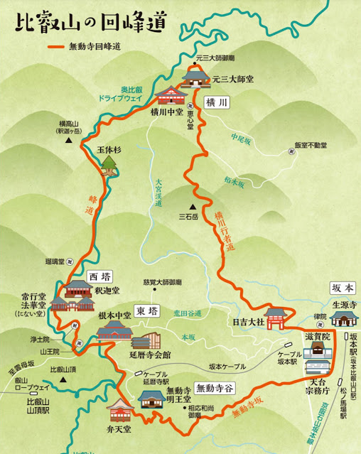千日回峰道のたった一日のそのまた半分だけですが、今回の主なスポットをまとめた詳細マップを下に載せておきます。